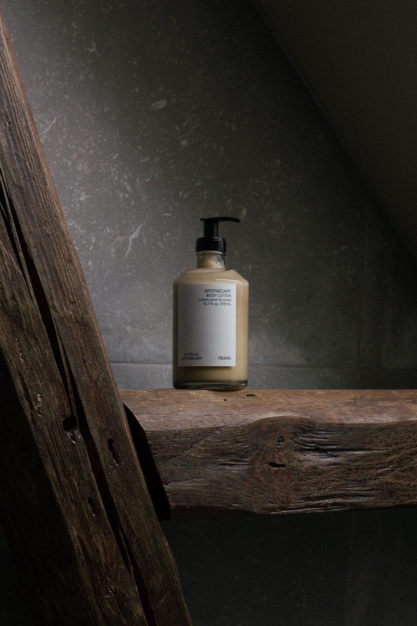 Apothecary Body Lotion moisturizes and protects the skin while promoting cell renewal, formulated with a rich blend of calming aloe vera, rosehip oil, and softening shea butter. Apothecary Body Lotion regenerates the skin with a softening and protective layer and scents gently with a distinctive aroma.