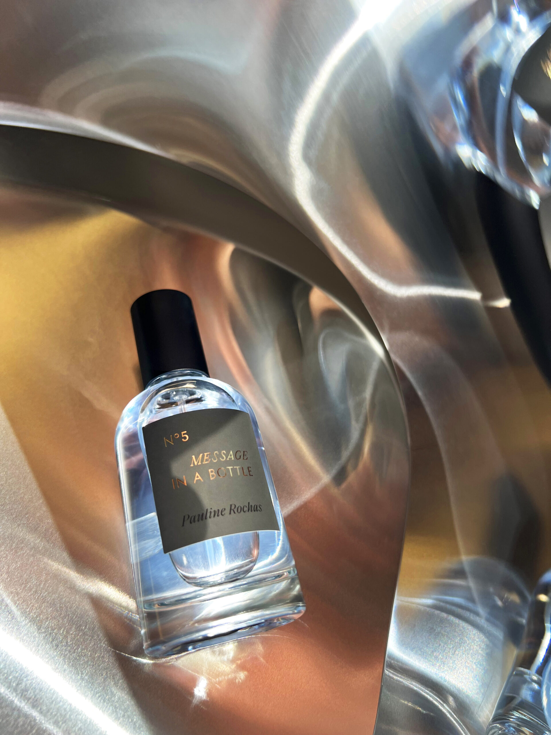 Message in a Bottle Voice Chakra Aromatic Perfume – a 50ml Woody blend of mint, basil, sage, and amber to empower authentic self-expression.