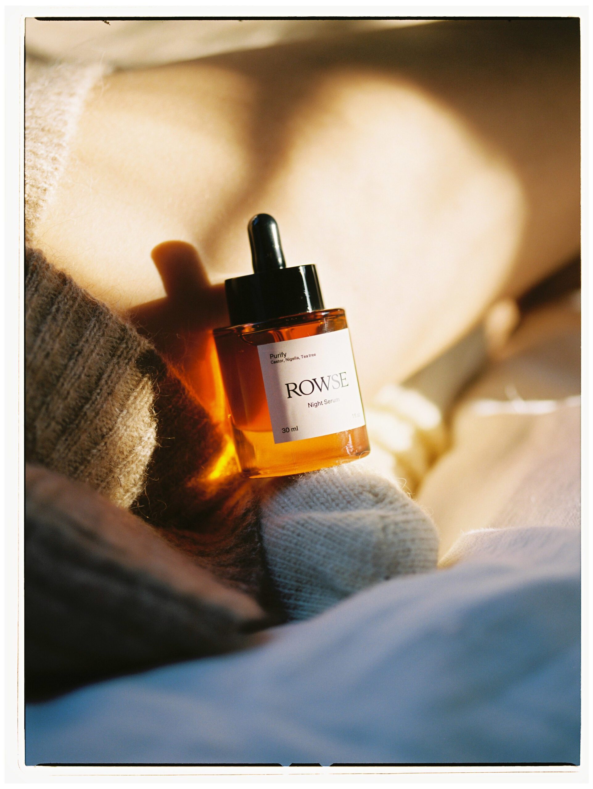 Introducing Purify Night Serum by Rowse, a nourishing formula with Castor Oil, Nigella Oil, and Tea Tree Essential Oil.