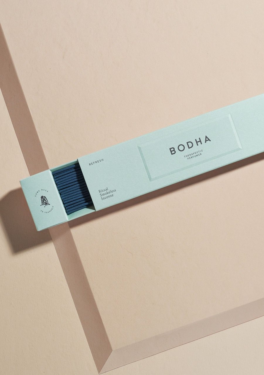 Experience a burst of freshness with Bodha’s Refresh Ritual Smokeless Incense. Housed in a compostable paper box, this set includes 50 x 25-minute incense sticks with clean green notes of Petitgrain, Violet Leaf & Frankincense. The gentle fragrance and smokeless burn create the perfect meditative scent, making it ideal for energizing and invigorating your space, especially for new creations. The aroma is a harmonious blend of green, woody, and incense notes. Light a stick and blow out the flame as part of your daily ritual or whenever you desire a moment of refreshment. Crafted in Japan, these scents are recognized by Vogue France as the meeting point between perfume and aromatherapy.